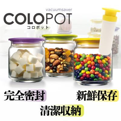 クリアなソーダガラスで食品の保存に最適な「COLOPOT(コロポット)」!二重シリコンとガスケットでできたフタが、容器内をきっちりガードして密封状態にするとともに、空気や水の「もれ」を防ぎます!付属の専用ポンプで容器内の空気を簡単に取り除くことで、低真空状態になるため、食材の品質を長期間維持することができ、乾燥食材も湿気から守れます。円柱形のガラス製なので、漬物やピクルスなどの保存食も安全・安心に長期保存可能。クッキーやドライフルーズなどをいれて保存してもお洒落♪シリコン製のフタなので積み重ねが可能。