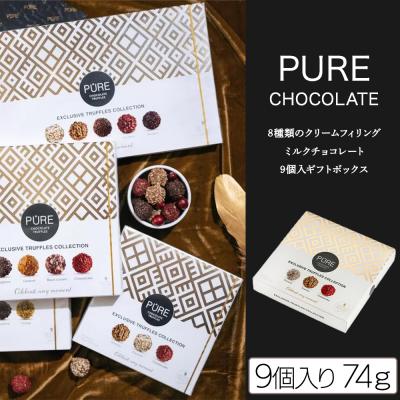 PUREチョコ/9個入ギフトBOX/クリームフィリングミルクチョコレート 最高級ベルギー産チョコレートを使用したチョコレートトリュフ!チョコ・フルーツ・ナッツのコンビネーションをお楽しみください!3種類合計9個入りのギフトBOXです! 提供開始日: 2024-01-31 00:00:00 約8.2g×9個入り Tweet