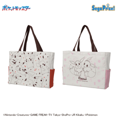 両サイドにポケットが付いた、使いやすいトートバッグが登場!全2種類!ピカチュウとイーブイが可愛くデザインされています♪