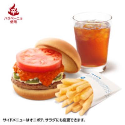 スパイシーモスバーガー レギュラーセット(スパイシーモスバーガー+ポテトM or オニポテ or サラダ+ドリンクMサイズ)【モスバーガー】【デジタルギフト景品】 スパイシーモスバーガー、ポテトM or オニポテ or サラダ(3つのうち1つ)、ドリンク(コールドドリンクMサイズまたはホットドリンク)をセットにした商品です。 提供開始日: 2025-12-01 00:00:00 Tweet