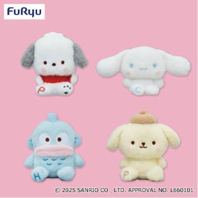 ふわふわ生地&ミルキーカラーが可愛い!手のひらサイズのマスコットが登場です☆シナモロール、ポチャッコ、ハンギョドン、ポムポムプリンの全4種アソート!足裏にイニシャルが入っているのもポイントです♪