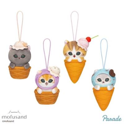 夏にぴったり!「mofusand」より、アイスにゃんがマスコットで登場です☆全4種アソート!コーンに入ったアイス姿のにゃんこたちがとっても可愛いです♪同時登場のBIGぬいぐるみもお見逃しなく!