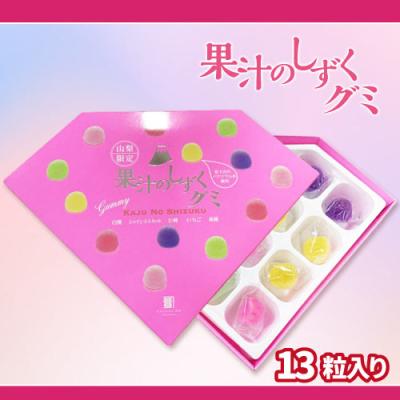 果汁のしずく グミ【賞味期限:2026/02/20】 山梨限定の人気お菓子!富士山のバナジウム水を使用した山梨を代表するフルーツグミです!内容:シャインマスカット、白桃、巨峰、黄桃、いちご味の5種 提供開始日: 2025-09-23 00:00:00 13粒入 Tweet
