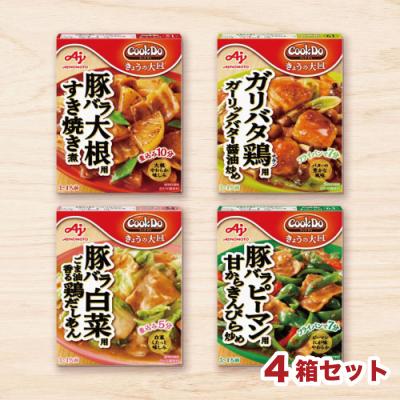 クックドゥ きょうの大皿 4種の味わいセット【賞味期限:2026/12/31】 食材を切って絡めるだけでおかずが完成!とっても便利な合わせ調味料です! 内容:豚バラ大根用すき焼き煮・豚バラ白菜用鶏だしあん・ガリバタ鶏用ガリバタ醤油炒め・豚バラピーマン用甘辛きんぴら炒め 提供開始日: 2026-01-12 09:00:00 4箱セット Tweet