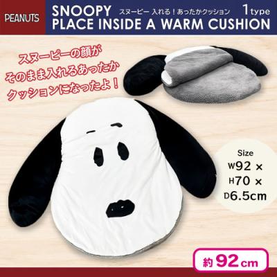スヌーピー入れる!あったかクッション スヌーピーの顔がそのまま入れるあったかクッション!耳までしっかり綿入りでボリューム感たっぷり!厚み約6.5cmのクッション性がとてもいい!外側生地はさらさらソフトボア生地、内側生地はふわふわあったかプードルボア生地使用!不織布巾着入り!サイズ:約W92×H70×D6.5cm 提供開始日: 2025-12-05 15:00:00 約92cm Tweet