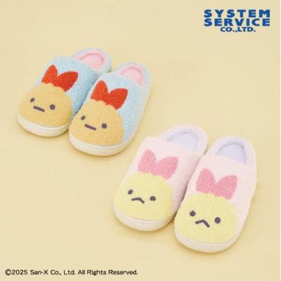 タフティング風仕上げがかわいい!「えびふらいのしっぽ」と「えびてんのしっぽ」が“ふわもこ”ルームシューズになって登場っ☆インナーに長毛生地を使用した、暖かな履き心地も魅力です!すみっコたちとおうち時間を楽しく過ごそう♪