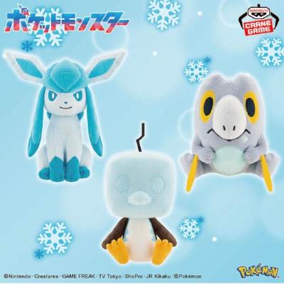 冬にピッタリな“こおりタイプ”をもつポケモンたちが大集合!「グレイシア」「コオリッポ(アイスフェイス)」「セビエ」が、手のひらサイズのぬいぐるみで登場です☆いっしょにお出かけしたり、ぬい撮りにもぴったり!お気に入りのポケモンをゲットしよう♪