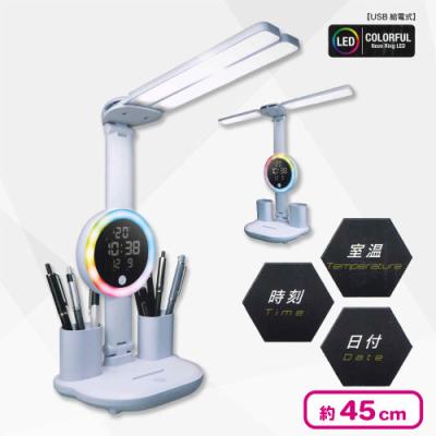 マルチLEDネオンスタンド USB通電式でライト部分はシーンに合わせて垂直型か平行型に変形可能!3パターンに変わるLEDカラーの他、ディスプレイ部分には室温・時刻・日付が表示されるので日常生活でも役立ちます♪土台にはペンスタンドもあるので、勉強や仕事のお供としてもGood!サイズ:約H45×W32×D12cm 提供開始日: 2026-03-25 15:00:00 約45cm Tweet